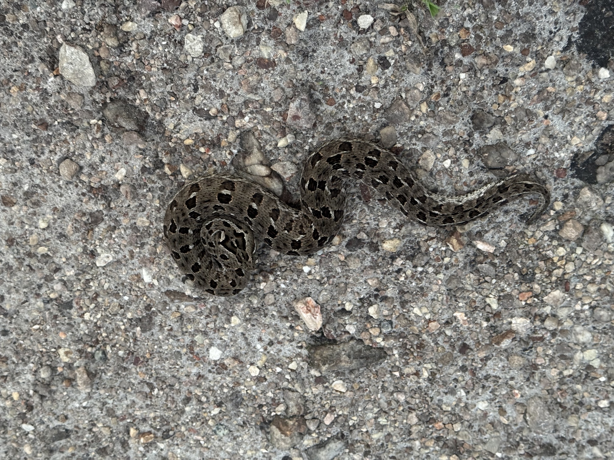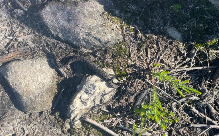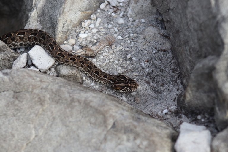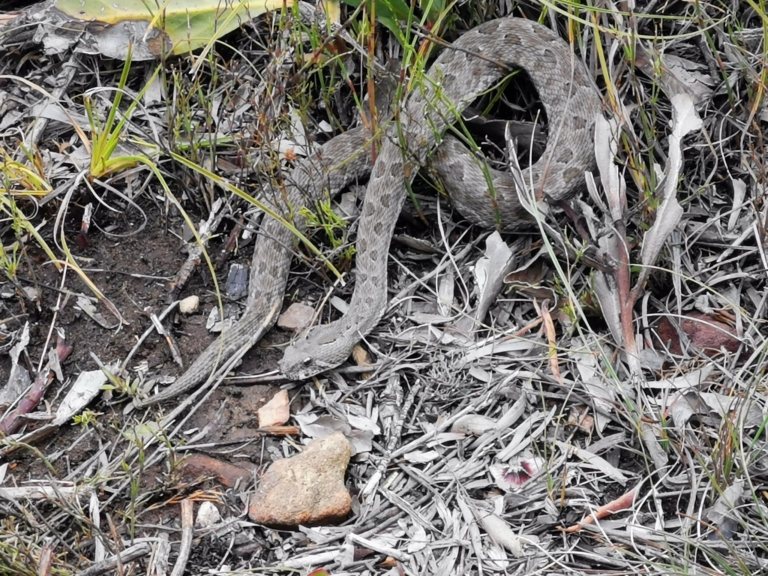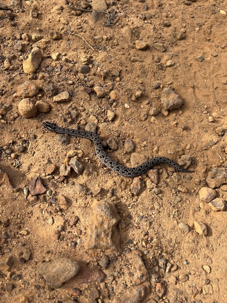 Western Cape Berg Adders are often characterized by their clearly-defined pattern and darker overall grey coloration. This color-pattern serves as excellent camouflage against the dark, often lichen-covered rocky outcrops and fynbos vegetation typical of the Western Cape. They are found from the coast to the mountains, such as the Cederberg, Swartberg & Outeniqua ranges. Their patterning is usually bold and distinct, featuring a series of dark grey or dark brown half-circle (or sometimes more square-ish) blotches along their dorsum. Crucially, these darker markings are frequently outlined with a thin, contrasting white or pale border, which further helps to break up the snake’s outline against a varied background.