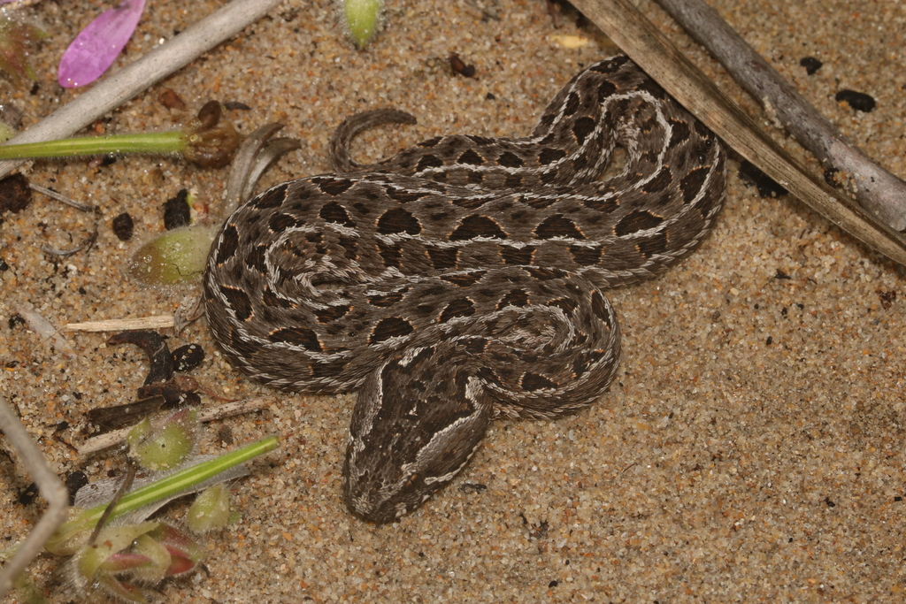 While sharing many similarities with their Western Cape counterparts, Eastern Cape Berg Adders tend to lean towards a slightly browner or more muted grey-brown base color. They are found from sea-level to high altitudes within the province. The distinctive dorsal markings are still present and typically bold, but the overall contrast might be less stark than in some Western Cape specimens. The white outlining of the blotches may also be less pronounced or even absent in some individuals, allowing them to blend more seamlessly into the varying shades of brown, grey, and green found in the Eastern Cape’s mountainous grasslands and shrublands.