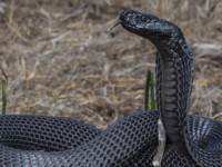 The Black Spitting Cobra is mostly active during the day, especially on overcast days. If it detects danger it will quickly flee, but if approached, or in close proximity, it will readily spit or spray its venom.