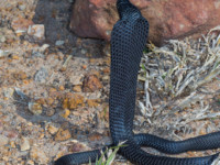 The Black Spitting Cobra is found in arid, sandy and rocky areas, especially dry riverbeds.